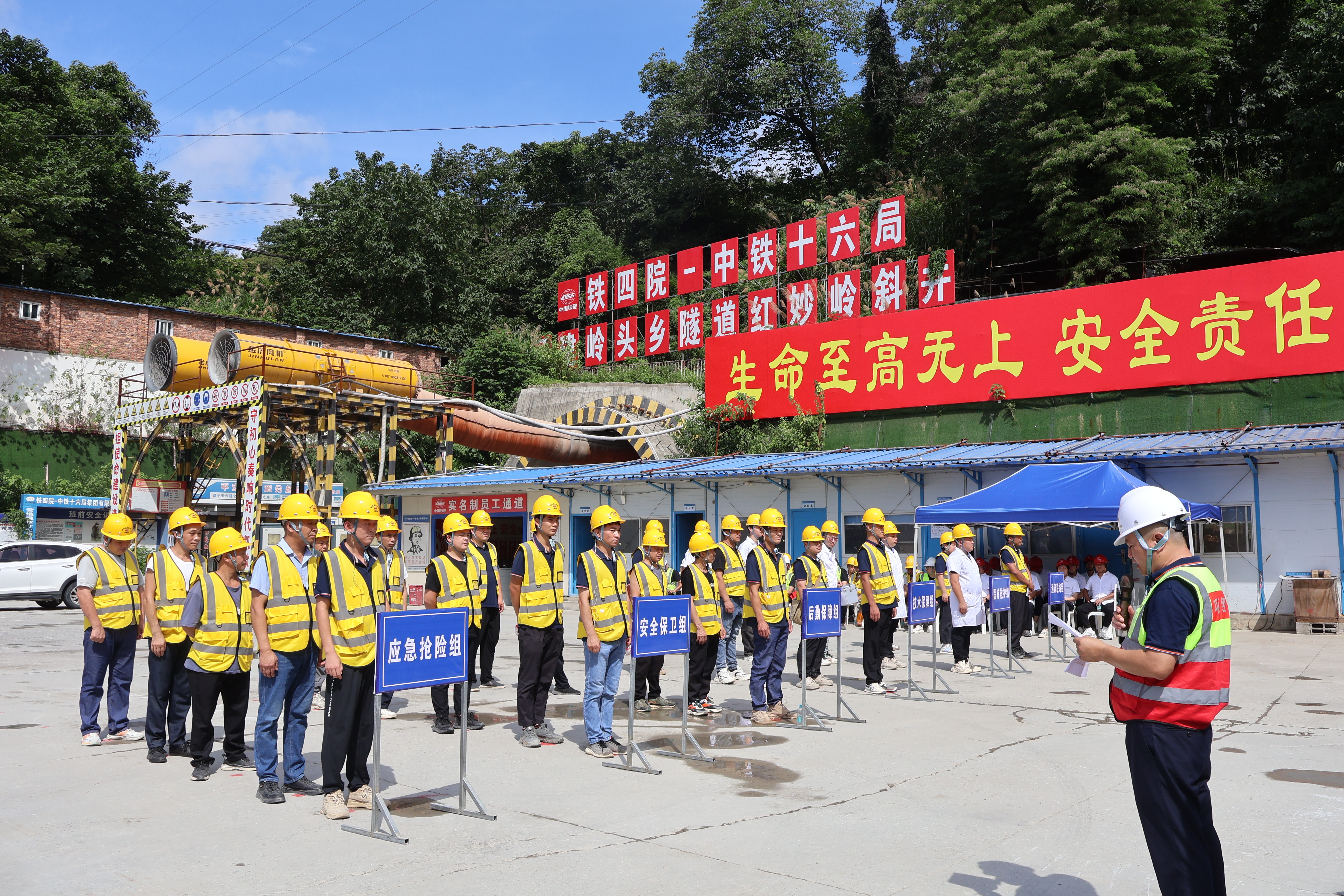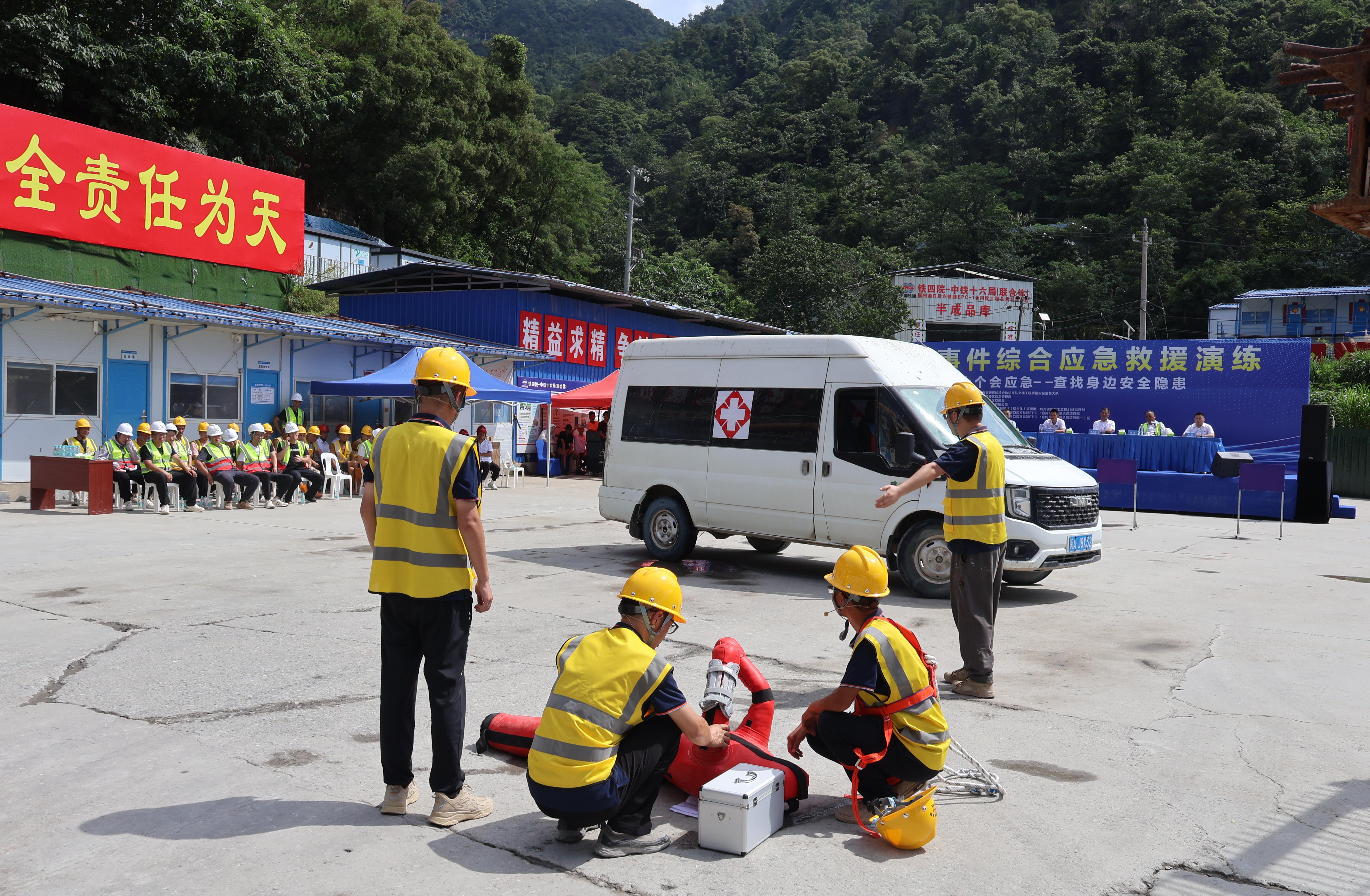 6月21日,福州港后铁路项目在岭头乡隧道洞口开展隧道安全应急救援综合演练,福州市交通局交通质安大队、晋安区应急管理局、晋安区交通局、福州港铁公司及参建单位约70人参加,以“真演真练”筑牢市重点工程安全生产防线。