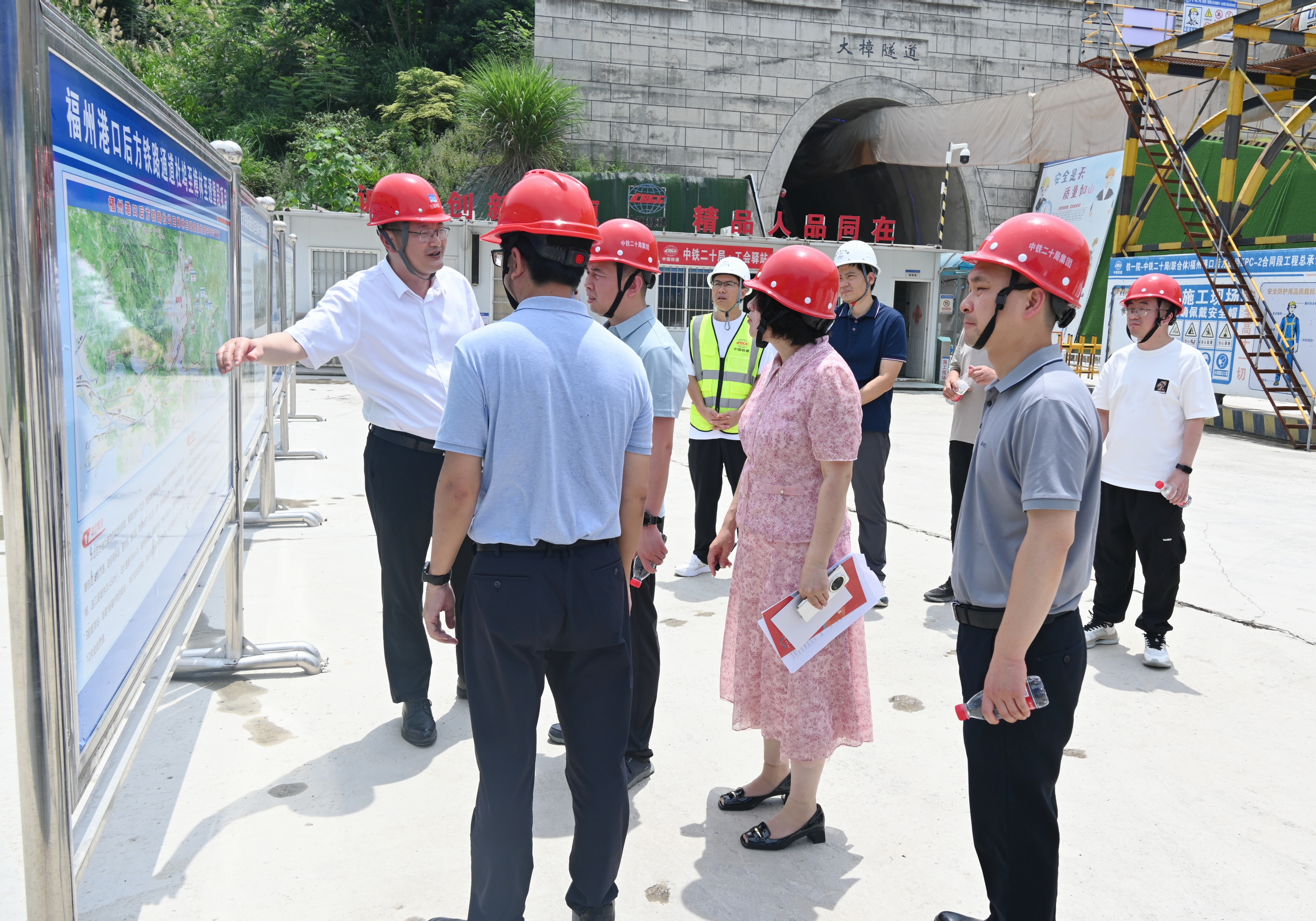调研组一行深入一线实地查看福州港后铁路项目大樟隧道施工现场,听取了港后铁路公司相关负责人关于福州港后铁路项目的建设进度、建设意义及补链强链工作取得实效方面的汇报。作为福建省实施国家综合货运枢纽补链强链的重点项目之一,福州港后铁路项目的建成对福建省构建“21世纪海上丝绸之路”重要枢纽、开辟“一带一路”新航线、打造“丝路海运”国际综合物流服务平台具有重要意义。调研组对项目目前建设情况予以肯定,并强调: