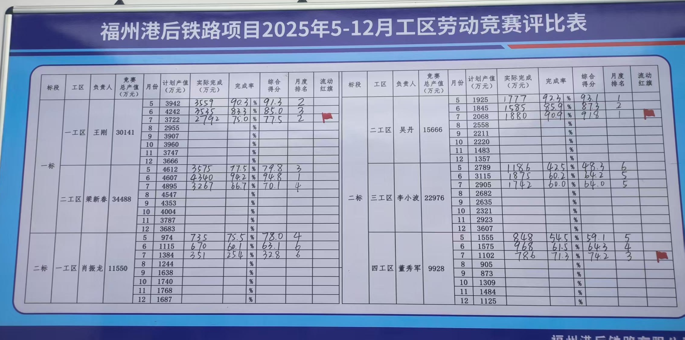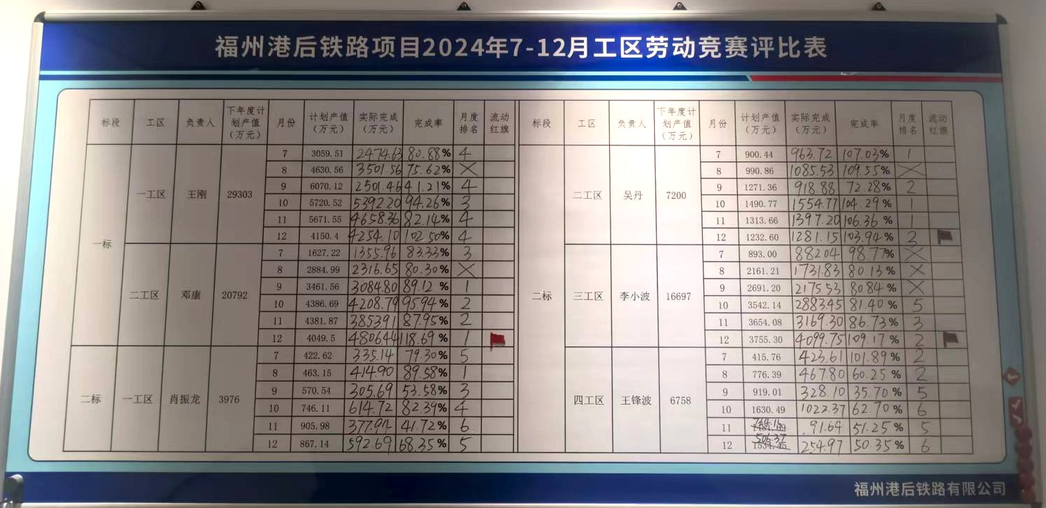 自2024年7月左海集团领导亲自擘画并授意开展工区劳动竞赛以来,港后铁路项目闻令而动、精心组织、狠抓落实,在全体参建单位中迅速掀起“比学赶帮超”的热潮。此次活动不仅是集团领导深谋远虑、站位高远的重要决策,更成为项目攻坚克难、提质增效的核心引擎,有力驱动项目建设跑出“加速度”,安全与质量管理筑牢“新防线”,整体工作呈现蓬勃向上的崭新气象。项目在2024年结合内部情况组织实施,并逐步深化至2025年,积极融合党建品牌建设,联合市总工会协力推动工区竞赛活动向纵深发展。