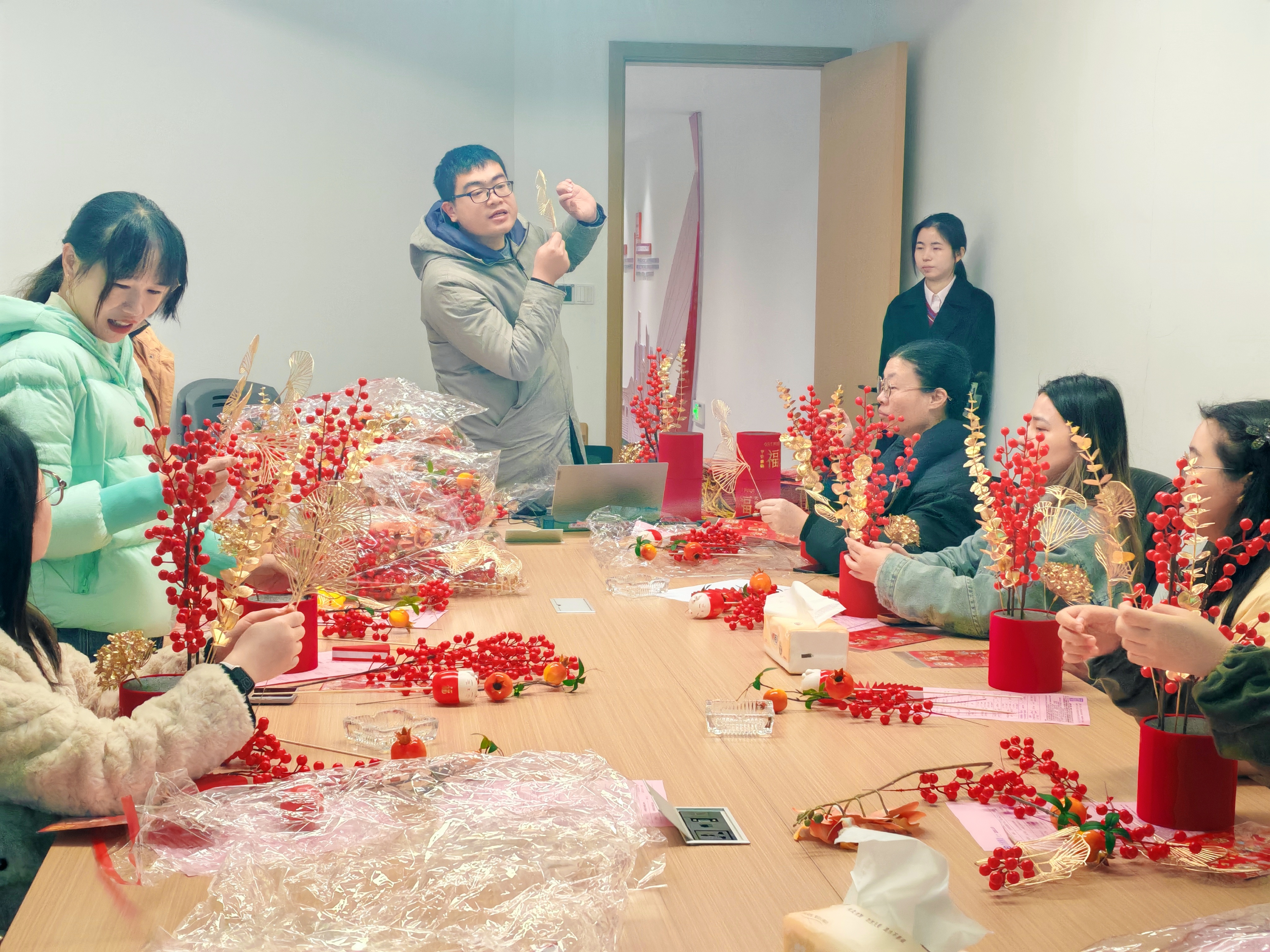 随后,活动来到富有传统韵味的“福”文化体验环节。福建作为全国唯一以“福”字命名的省份,深厚的“福”文化底蕴是推动地区发展的重要精神动力。为深化员工对地域文化的认同感,本次活动特别安排了“手工福桶DIY”环节。在手工老师的指导下,大家分工协作,剪裁红花、扦插金枝、挂上饰品。在欢声笑语中,一个个造型精美、寓意吉祥的“福桶”在员工手中成型。通过共同参与创作,不同企业间的员工在“福”文化浸润下建立了深厚友谊,员工们捧着自己亲手制作的福桶,脸上洋溢着满满的喜悦之情。