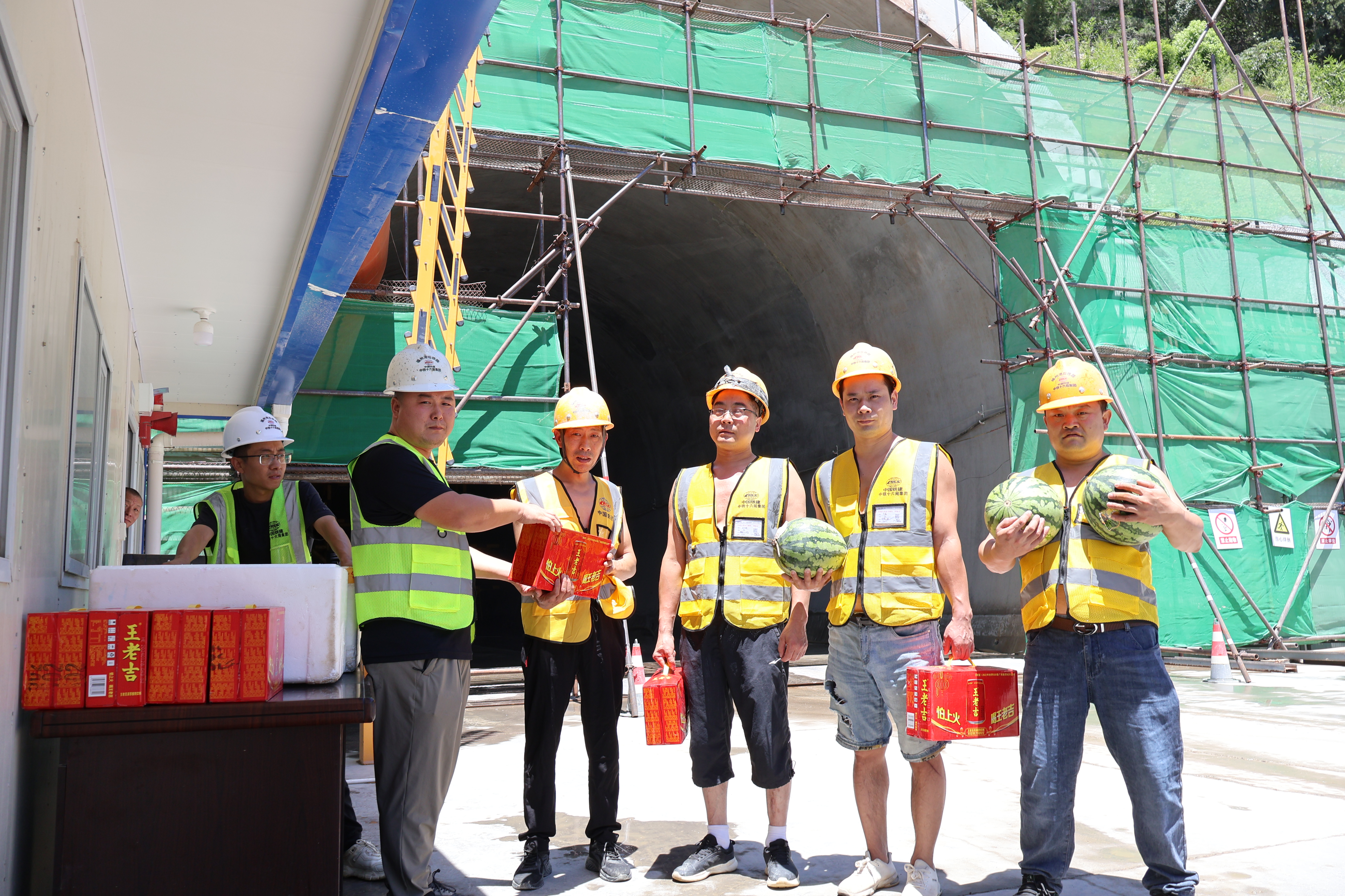 为做好防暑降温工作,改善一线工人工作条件,确保一线工人健康工作、安全生产防护和现场文明施工管理,福州港后铁路有限公司通过合理安排高温天气工作时间、在各工点设置防暑降温纳凉点、防暑冰柜,发放矿泉水、西瓜、王老吉、藿香正气水等防暑降温物品等措施,全力保障建设者战高温、斗酷暑,掀起施工大干热潮,跑出生产“加速度”。